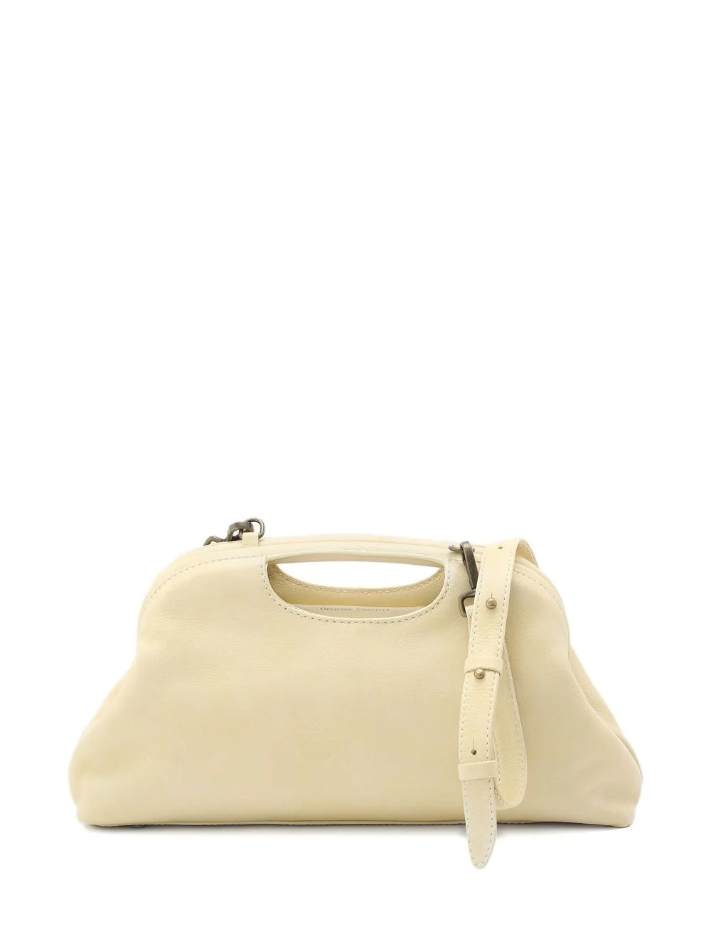 leather clutch bag Highlights - Pale yellow - Leather - Single top handle - Clasp fastening - Detachable shoulder strap - Curved shape Made in Italy Composition Leather 100%