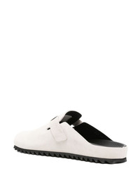 leather slippers Highlights - Off-white - Buckle strap - Open back - Rubber sole - Slip-on style Made in Italy Composition Lining: Calf Leather 100% Sole: Rubber 100% Outer: Calf Suede 100%