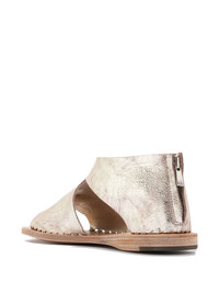 metallic leather sandals Highlights - Silver-tone - Leather - Cut-out design - Zip fastening - Flat sole Made in Italy Composition Outer: Buffalo Leather 100% Lining: Calf Leather 100% Sole: Calf Leather 100%