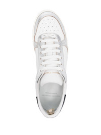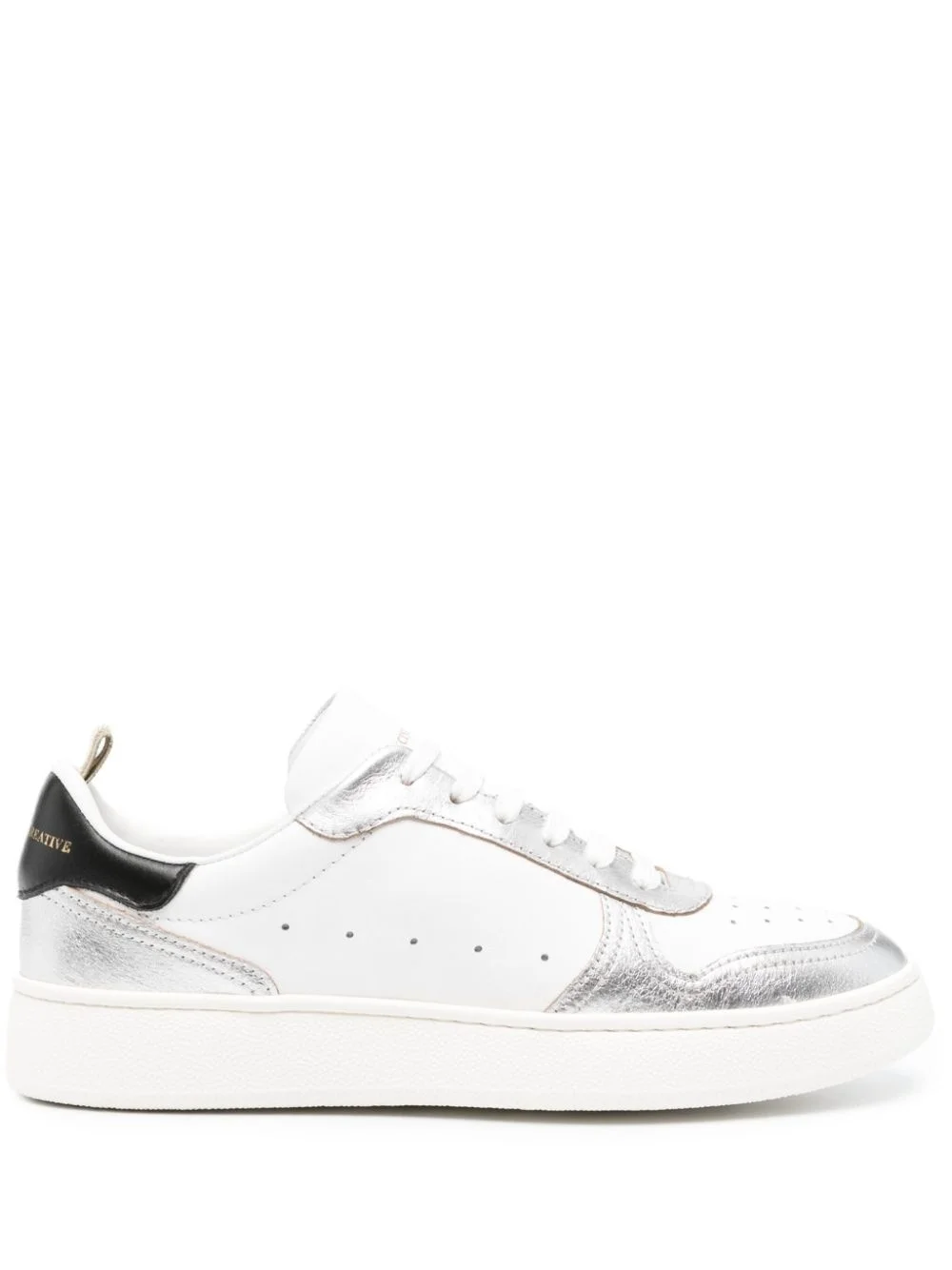 Mower leather sneakers Highlights - Optical white/silver-tone/black - Calf leather - Metallic finish - Perforated detailing - Contrasting branded heel counter - Round toe - Front lace-up fastening - Branded insole - Flat rubber sole Made in Italy Composition Leather 100% SIZE & FIT Measurement HEEL 1.18 in(3 cm)
