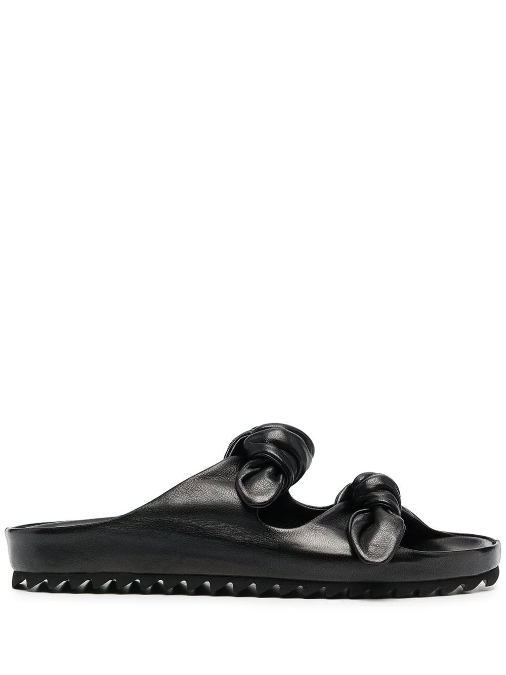 Pelagie knotted leather slides black calf leather open toe slip-on style branded insole rubber sole Made in Italy Composition Leather 100% SIZE & FIT Measurement HEEL 1.18 in(3 cm) Sole height 0.98 in(2.5 cm)