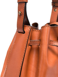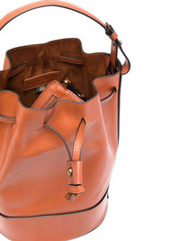 Saddle leather drawstring bucket bag rhum brown calf leather internal logo patch drawstring fastening removable pouch single rounded top handle flat base Made in Italy Composition Outer: Calf Leather 100% SIZE & FIT Measurement DEPTH 6.69 in(17 cm) HANDLE 5.11 in(13 cm) HEIGHT 11.41 in(29 cm) MAXIMUM WIDTH 10.23 in(26 cm) MINIMUM WIDTH 8.26 in(21 cm) STRAP 15.74 in(40 cm)