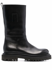 Wisal pull-on leather boots black calf leather polished finish grained texture tonal stitching round toe pull-tab at the heel rubber lug sole Made in Italy Composition Leather 100% SIZE & FIT Measurement CIRCUMFERENCE 12.59 in(32 cm) HEEL 1.57 in(4 cm) HEIGHT 10.23 in(26 cm) Sole height 1.18 in(3 cm)