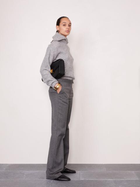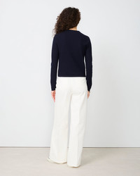 Long sleeve knitted jumper. Fitted body and sleeves. Rounded neckline. Single ribs on collar, body bottom and sleeves bottom. Jersey stitch. Gauge 12. Felted Merino wool. Made in Italy, in Italian yarn. - 100% merino wool - Long sleeve knitted jumper - Fitted body and sleeves - Rounded neckline - Single ribs on collar, body bottom and sleeves bottom - Jersey stitch - Gauge 12 - Felted Merino wool - Italian yarn - Machine washable with great care. However, we recommend dry cleaning to ensure a long and beautiful life for your sweater. - Made in Italy This product sizes normally, we advise you to take your usual size. Our model measures 1m75 and wears a size S. Exists in sizes XS to XL. REF: W24WKNT318