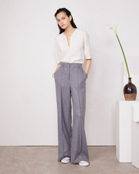 High waisted pants with wide leg. Italian pockets and welt back pockets. Italian fabric. Matching jacket available. Made in Portugal. - 90% wool 10% cashmere - Wide leg - High waisted pants - Italian pockets - Welt back pockets - Italian fabric - Matching jacket available - Dry cleaning only - Made in Portugal This product sizes normally, we advise you to take your usual size. Our model measures 1m75 and wears a size 36. Exists in sizes 34 to 44. REF: S25WTLG452PRE