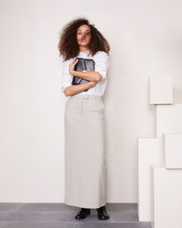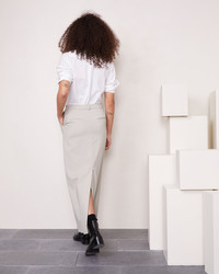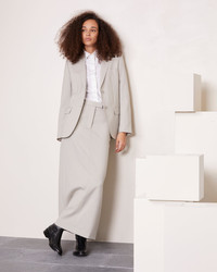 Long pencil skirt. Low waisted. Middle back vent. Hammer waistband with front zipper. Italian sides pockets. Color developped by Officine Generale.Italian fabric. Made in Portugal. - 100% virgin wool - Long pencil skirt - Low waisted - Middle back vent - Hammer waistband with front zipper - Italian sides pockets - Color developped by Officine Generale - Italian fabric - dry cleaning only - Made in Portugal This product sizes normally, we advise you to take your usual size. Our model measures 1m75 and wears a size S. Exists in sizes XS to XL. REF: W24WSKT153