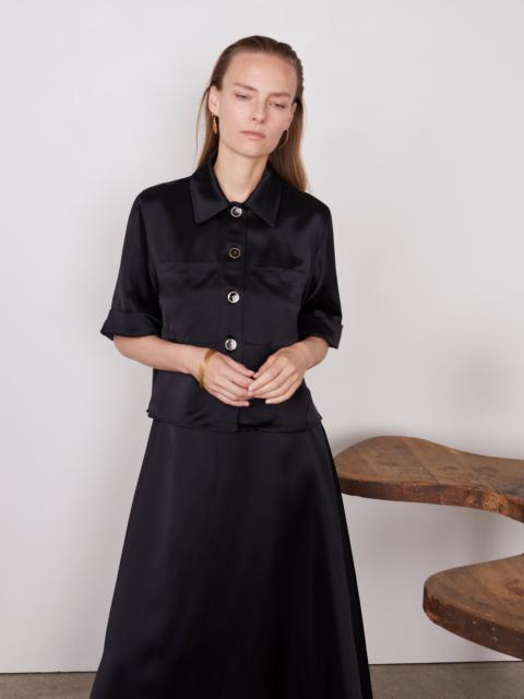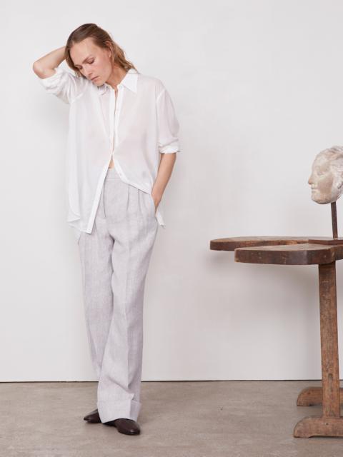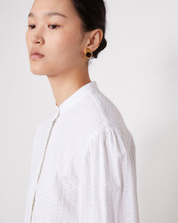 Long sleeve shirt with a band collar. Slightly loose fit. Cropped shirt. Gathers at the top of the sleeves and around the cuffs. Fold over button placket. Classic cuff with a slit. Textured stripe cotton. Garment wash. Made in Portugal. - 98% cotton 2% elastane - Slightly loose fit - Long sleeves shirt - Band collar - Cropped shirt - Gathers at the top of the sleeves and around the cuffs - Fold over button placket - Classic cuff with a slit - Textured stripe cotton - Garment wash - Machine washable with similar colors, 30° - Made in Portugal This product sizes normally, we advise you to take your usual size. Our model measures 1m78 and wears a size S. Exists in sizes XS to XL. REF: S25WSHI007