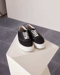 Asahi is a japanese brand working since 1892. Made in Kurume, a region famous for its sneakers, Asahi design its shoes by using the codes of the craft industry. Whether on the deck of a ship, on a skateboard or comfortably seated in a cafe, whether you're wearing a suit, a chino or a japanese selvedge denim, the Deck shoes will fit perfectly into your Officine Generale wardrobe... Time to get it! - Adherent soles - Light cotton canvas upper - Cotton laces, tone-on-tone eyelets - Assembly technique before the bonding process, offering optimal durability - 100% japanese cotton and rubber sole - Preferably, waterproof it before first use - Made in Japan Exists in sizes 23 (36) to 25.5 (41) REF: ASAHIL011BLK