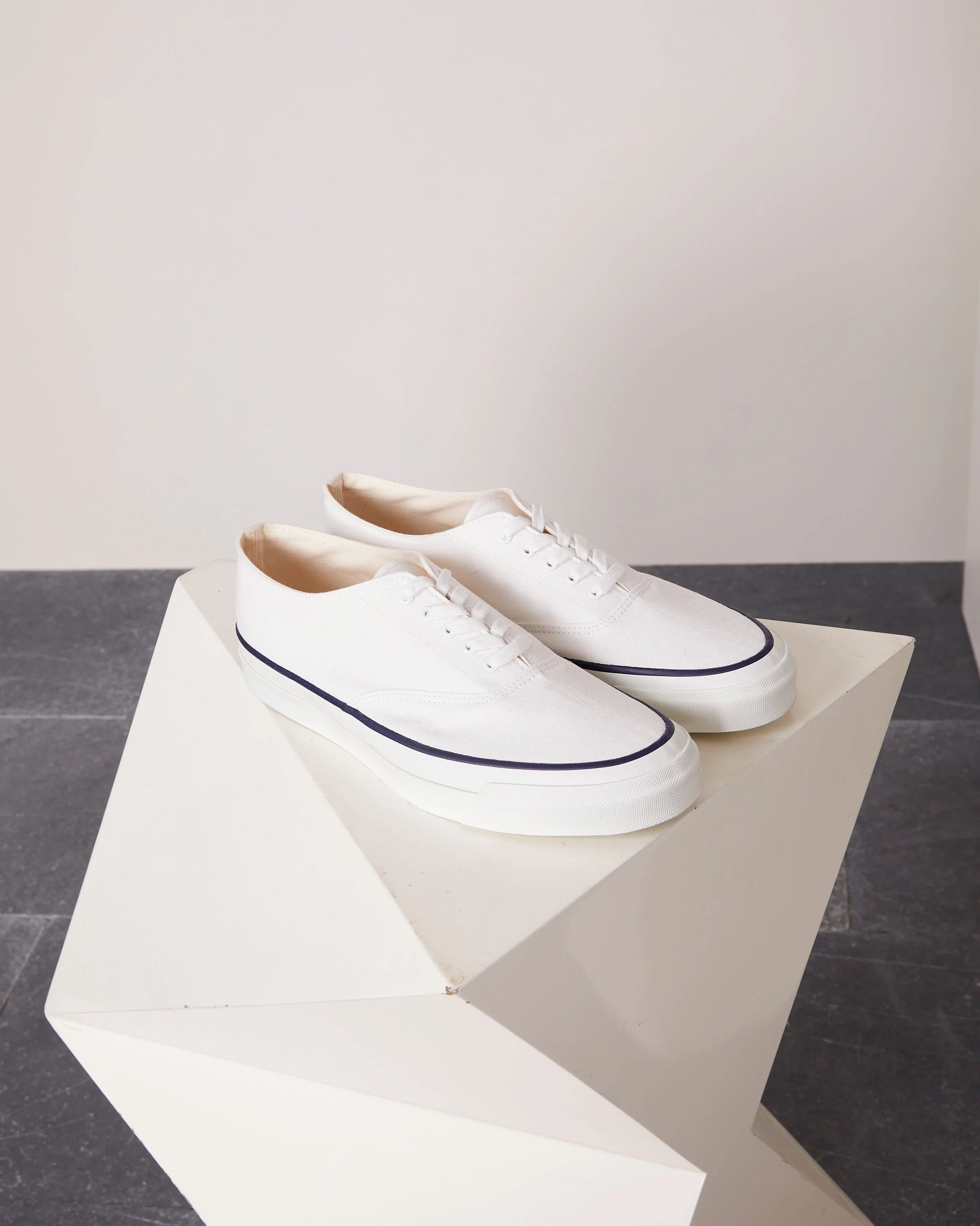 Asahi is a japanese brand working since 1892. Made in Kurume, a region famous for its sneakers, Asahi design its shoes by using the codes of the craft industry. Whether on the deck of a ship, on a skateboard or comfortably seated in a cafe, whether you're wearing a suit, a chino or a japanese selvedge denim, the Deck shoes will fit perfectly into your Officine Generale wardrobe... Time to get it! - Adherent soles - Light cotton canvas upper - Cotton laces, tone-on-tone eyelets - Assembly technique before the bonding process, offering optimal durability - 100% japanese cotton and rubber sole - Preferably, waterproof it before first use - Made in Japan Exists in sizes 23 (36) to 25.5 (41) REF: ASAHIL011