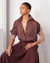 Long sleeve shirt with a long sharp shirt collar. Loose fit. Long shirt. Fold over button placket. Curved hem with the back longer than the front. Straight back yoke with gathers next to the sides. - 100% Polyester - Loose fit - Long sharp shirt collar - Fold over button placket - Straight back yoke with gathers next to the sides - Curved hem - Made in Portugal - dry cleaning only This product sizes normally, we advise you to take your usual size. Our model measures 1m75 and wears a size S. Exists in sizes XS to XL. REF: W25WSHI009