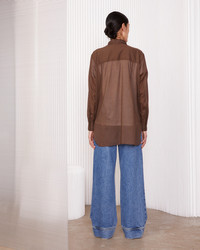 Long sleeve shirt. Long sharp shirt collar. Loose fit. Curved hem with the back longer than the front. Straight back yoke with gathers next to the sides. Hidden button placket. Color developped by Officine Generale. Made in India. - 100% cotton - Loose fit - Long sleeve shirt - Long sharp shirt collar - Curved hem with the back longer than the front - Straight back yoke with gathers next to the sides - Hidden button placket - Color developped by Officine Generale - Machine washable with similar colors, 30° - Made in India This product sizes normally, we advise you to take your usual size. Our model measures 1m78 and wears a size S. Exists in sizes XS to XXL. REF: W25WSHI002PRE
