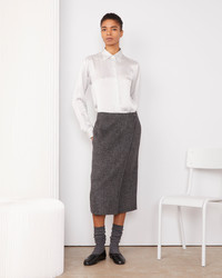 Long sleeve shirt with a shirt collar. Classic fit. Classic cuff with a capucin cuff placket. Gathers on cuff. Fold over placket. V-shape back yoke. Curved hem with gussets at side seam. - 100% Viscose - Classic fit - Shirt collar - Fold over button placket - V-shape back yoke - Classic cuff with a capucin cuff placket - Gathers on cuff - Curved hem with gussets at side seam - Garment wash - Made in Portugal - dry cleaning only This product sizes normally, we advise you to take your usual size. Our model measures 1m75 and wears a size S. Exists in sizes XS to XL. REF: W25WSHI002
