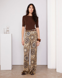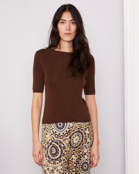 Short sleeves knitted top. Fitted top. Single rib stitch on body and sleeves. Single Rib 2x2 on neckline, bottom sleeve and body. Gage 16. Lyocell and wool yarn. Knitted in China. - 85% lyocell 15% wool - Fitted top - Short sleeves knitted top - Single rib stitch on body and sleeves - Single Rib 2x2 on neckline, bottom sleeve and body - Lyocell and wool yarn - Machine washable with great care. However, we recommend dry cleaning to ensure a long and beautiful life for your sweater. - Made in China This product sizes normally, we advise you to take your usual size. Our model measures 1m78 and wears a size S. Exists in sizes XS to XXL. REF: W25WKNT305PRE