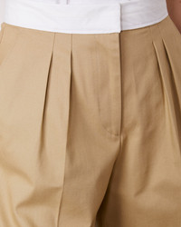 High waisted pants with wide leg and double pleats. Loose fit. Visible contrasted white prepared waistband. Italian pockets and welt back pockets. Garment dye and Garment wash. Color developed by Officine Generale. Matching jacket available. Made in Portugal. - 100% cotton - Loose fit - Double pleats - Wide leg - High waisted - Italian pockets - Welt back pockets - Visible contrasted white prepared waistband - Garment dye - Matching jacket available - Dry cleaning only - Made in Portugal This product sizes normally, we advise you to take your usual size. Our model measures 1m78 and wears a size 36. Exists in sizes 34 to 44. REF: S25WTLG456