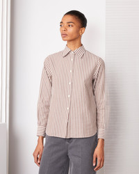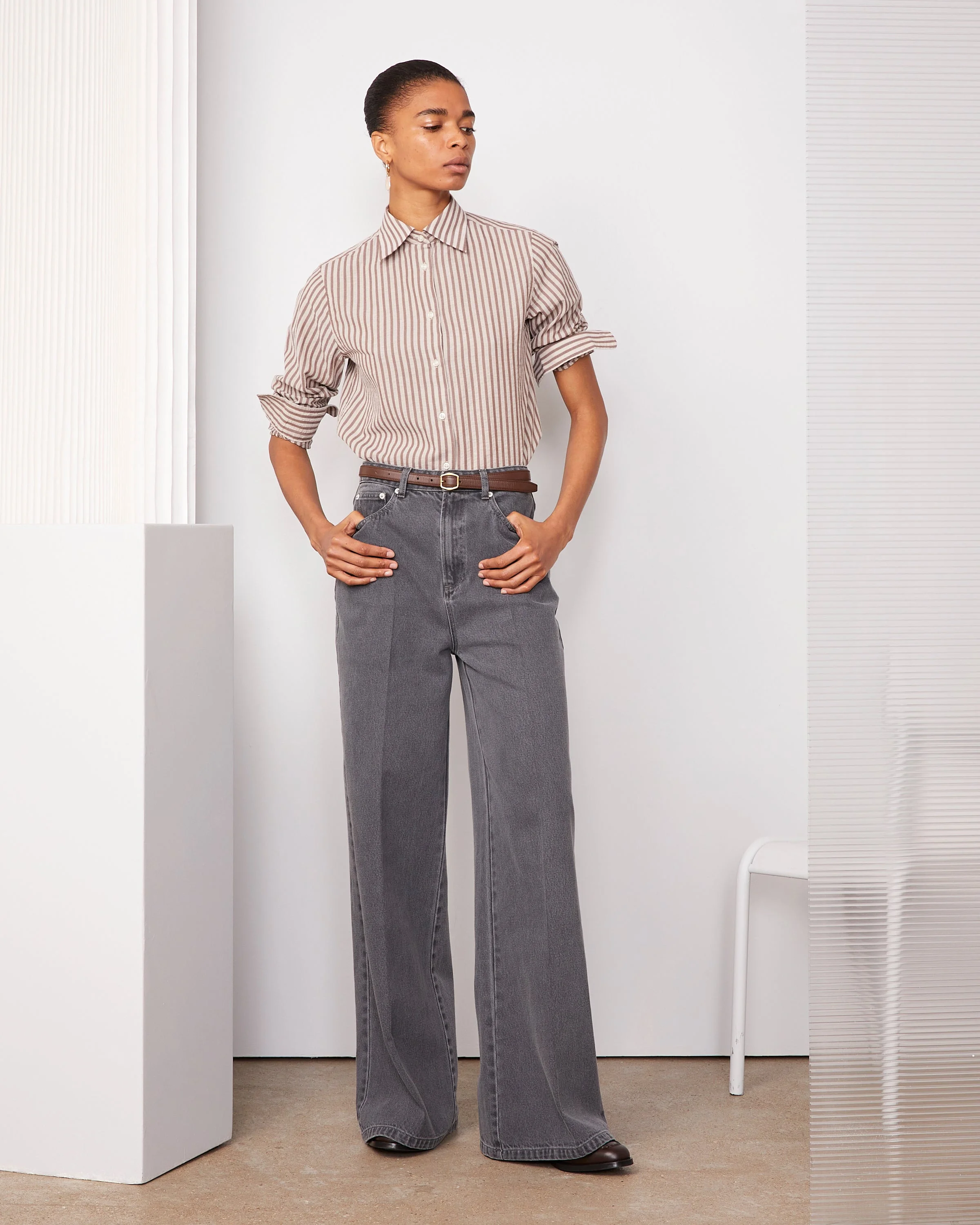 Long sleeve shirt with a shirt collar. Slightly A-shaped. Fold over button placket. Classic cuff with a capucin placket. Gathers on cuff. V-shaped back yoke. Inverted pleat on the middle back. Curved hem. Gussets at bottom side seam. - 100% Cotton - Slightely A-shaped - Shirt collar - Fold over button placket - Classic cuff with a capucin cuff placket - Gathers on cuff - V-shape back yoke - Inverted pleat on middle back - Garment wash - Made in Portugal - Machine washable with similar colors, 30°. This product sizes normally, we advise you to take your usual size. Our model measures 1m75 and wears a size S. Exists in sizes XS to XL. REF: W25WSHI005