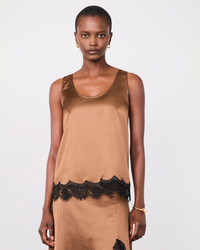 Regular fitted tank top with lace detail on bottom. - Slightly A-shaped - Deep front neckline - Matching skirt available - Italian fabric - Made in Portugal - Machine washable with similar colors, 30°. This product sizes normally, we advise you to take your usual size. Our model measures 1m75 and wears a size S. Exists in sizes XS to XL. REF: S26WTOP057