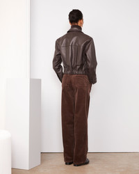 Leather bomber with front zipper closure in both ways. Boxy fit. Shirt collar. Inclined piped side pockets. Partly gathered waistband at the back. Two large pleats at the back. - 100% Lamb leather - Boxy fit - Front zipper closure in both ways - Shirt collar - Inclined piped side pockets - Partly gathered waistband at the back - Two large pleats at the back - Straight back yoke - Fully lined - Made in India - Cleaning by a leather specialist This product sizes normally, we advise you to take your usual size. Our model measures 1m75 and wears a size S. Exists in sizes XS to XL. REF: W25WLTR552