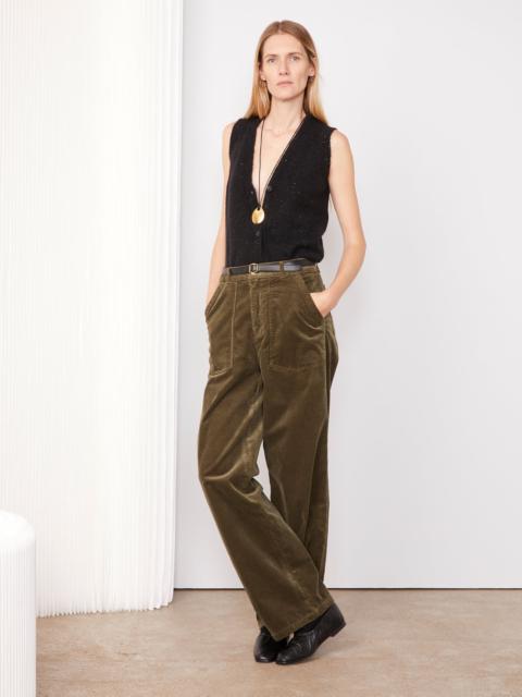 High-waisted pants. Loose fit. Patch pockets at front and at back. Color developed by Officine Generale. - 76% Cotton 22% Modal 2% Elastane - Loose fit - High-waisted - Patch pockets at front and at back - Color developed by Officine Generale - Garment wash - Made in Portugal - dry cleaning only This product sizes normally, we advise you to take your usual size. Our model measures 1m75 and wears a size 26. Exists in size 25 to 32. REF: W25WCHN701