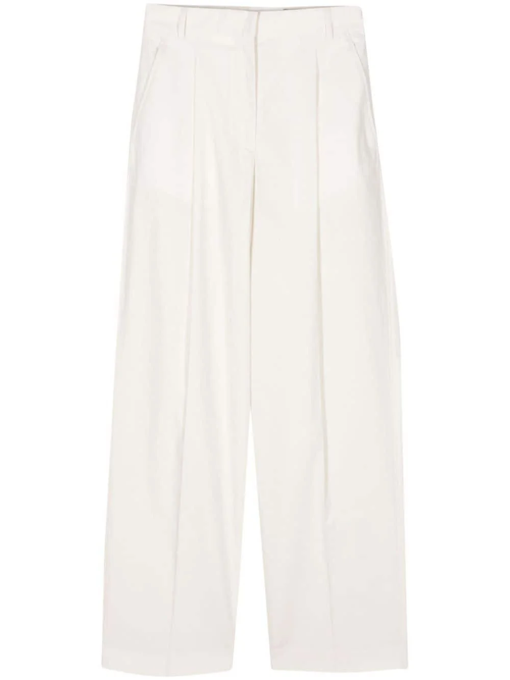 pleated poplin straight trousers Highlights - Light beige - Organic cotton - Poplin texture - Belt loops - Pleat detailing - Two side slash pockets - Pressed crease - Two rear welt pockets - Straight leg - Concealed front button, hook and zip fastening Imported Composition Outer: Organic Cotton 100% Lining: Cotton 100%