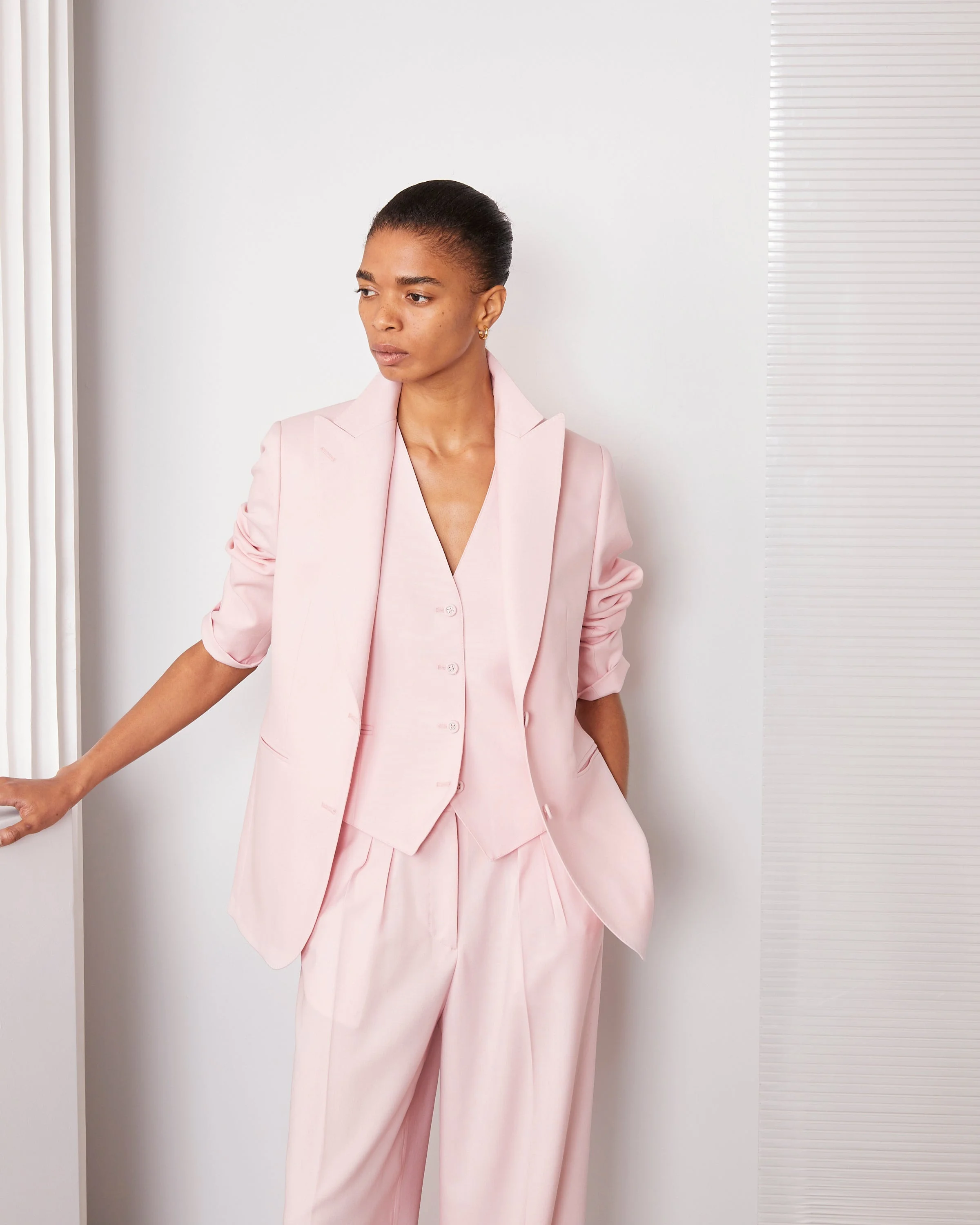 Single breasted two buttons jacket with a large peak lapel collar. Classic fit. Four-holes fabric-covered buttons. Welt pockets, double vents at back. Matching pants and waistcoat available. - 100% Virgin wool - Classic fit - Single breasted two buttons jacket - Four-holes fabric-covered buttons - Large collar - Piped pockets - Double vents at back - Matching pants and waistcoat available - Color developed by Officine Generale - Italian fabric - Made in Portugal - dry cleaning only This product sizes normally, we advise you to take your usual size. Our model measures 1m75 and wears a size 36. Exists in size 34 to 44. REF: W25WTLG412
