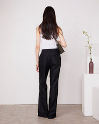 High waisted pants with boot leg. Permanent front and back pleat. Side seam pocket. Welt back pockets. Italian fabric. Matching jacket available. Made in Portugal. - 100% virgin wool - Boot leg - High waisted pants - Permanent front and back pleat - Side seam pocket - Welt back pockets - Italian fabric - Matching jacket available - Dry cleaning only - Made in Portugal This product sizes normally, we advise you to take your usual size. Our model measures 1m75 and wears a size 36. Exists in sizes 34 to 44. REF: S25WTLG455PRE