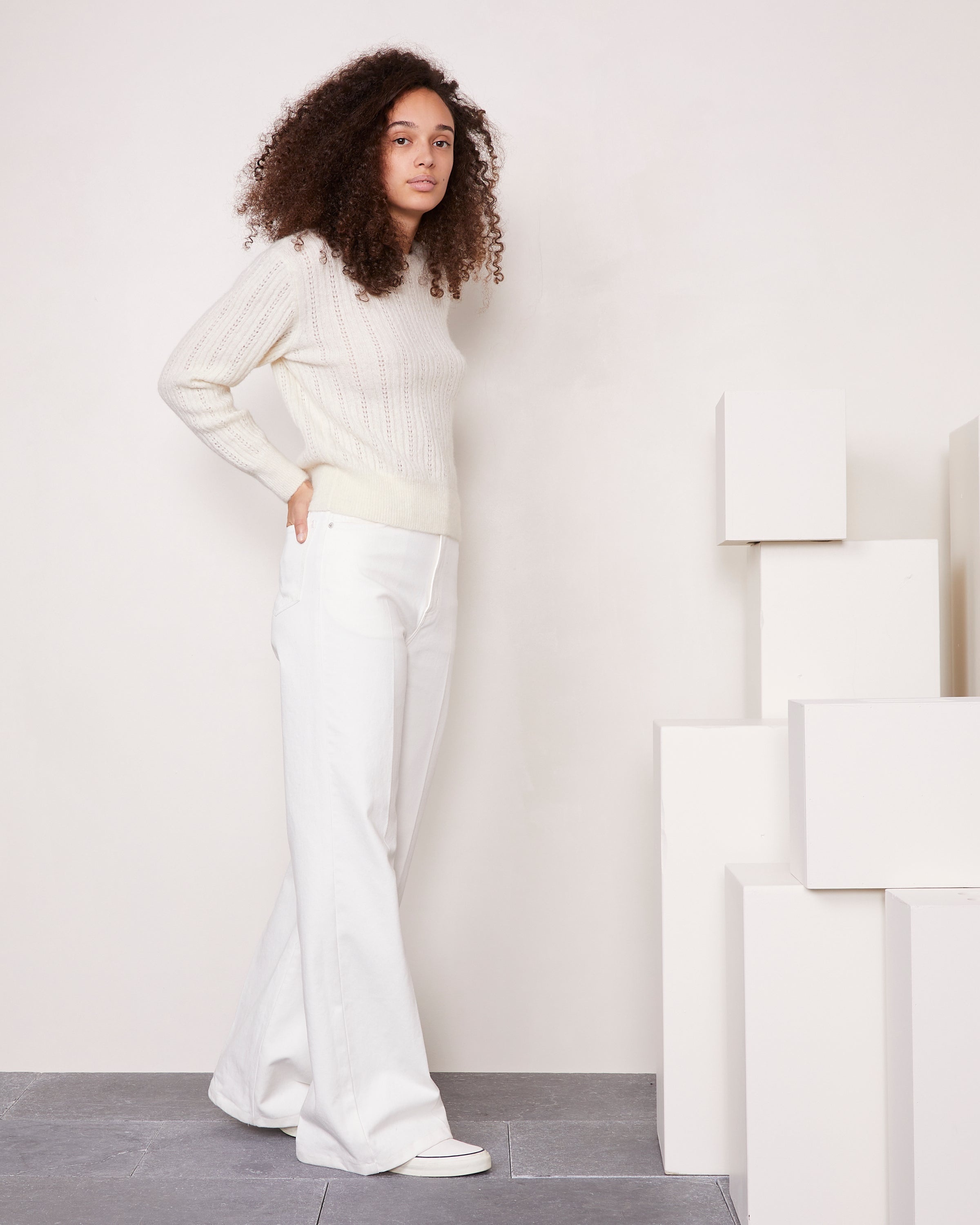 High waisted 5 pockets, wide leg jeans. Cotton denim. Made in Portugal. - 100% cotton - High waisted - Wide leg - 5 pockets - Cotton denim - Machine washable with similar colors, 30°. - Made in Portugal This product sizes normally, we advise you to take your usual size. Our model measures 1m75 and wears a size 27. REF: W24W5PT753
