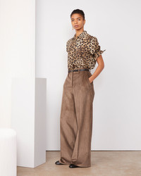 High waisted pants with wide leg. Loose fit. Italian pockets and welt back pockets. Matching jacket available. - 100% Cotton - Loose fit - High waisted pants - Wide leg - Italian pockets - Welt back pockets - Matching jacket available - Made in Portugal - dry cleaning only This product sizes normally, we advise you to take your usual size. Our model measures 1m75 and wears a size 36. Exists in size 34 to 44. REF: W25WTLG459