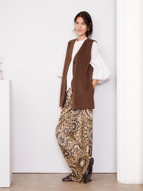 Double-breasted six-buttons jacket. Slighly loose fit. Four-holes fabric-covered buttons. Flap pockets, double vents at back. Matching pants and skirt available. - 100% Virgin wool - Slightly loose fit - Double-breasted six buttons jacket - Four-holes fabric-covered buttons - Flap pockets - Double vents at back - Matching pants and skirt available - Italian fabric - Made in Portugal - Machine washable with great care. However, we recommend dry cleaning to ensure a long and beautiful life for your sweater. This product sizes normally, we advise you to take your usual size. Our model measures 1m75 and wears a size 36. Exists in size 34 to 44. REF: W25WTLG406