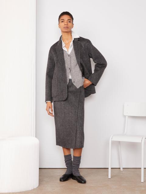 Double-breasted six-buttons jacket. Loose fit. Regular padding at shoulder. 4-holes fabric-covered buttons. Flap pockets, double vents at back. Pinstripe pattern. Matching pants available. Italian fabric. Made in Portugal. - 100% wool - Loose fit - Double-breasted six-buttons jacket - Regular padding at shoulder - Four-holes fabric-covered buttons - Flap pockets - Double vents at back - Pinstripe pattern - Matching pants available - Italian fabric - Dry cleaning only - Made in Portugal This product sizes normally, we advise you to take your usual size. Our model measures 1m78 and wears a size 36. Exists in sizes 34 to 44. REF: W25WTLG405PRE