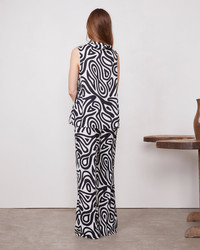 Sleeveless top with a draped stand-up collar. Straight fit. Little slit on the side seam. Exclusive print developed by Officine Generale. Italian fabric. Made in Portugal. - 100% viscose - Straight fit - Sleeveless top - Draped stand-up collar - Little slit on the side seam - Exclusive print developed by Officine Generale - Italian fabric - Dry cleaning only - Made in Portugal This product sizes normally, we advise you to take your usual size. Our model measures 1m78 and wears a size S. Exists in sizes XS to XL. REF: S25WTOP051