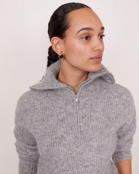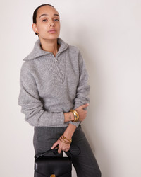 Long sleeves knitted jumper. Turtle neck with a zip. English Rib all over the body and sleeves. Gauge 7. Made in Portugal with an Italian yarn. - 37% alpaca 30% cotton 26% polyamide 7% wool - Long sleeves knitted jumper - Turtle neck with a zip - English Rib all over the body and sleeves - Gauge 7 - Italian yarn - Machine washable with great care. However, we recommend dry cleaning to ensure a long and beautiful life for your sweater. - Made in Portugal This product sizes normally, we advise you to take your usual size. Our model measures 1m75 and wears a size S. Exists in sizes 44 to 54. REF: W24WKNT309