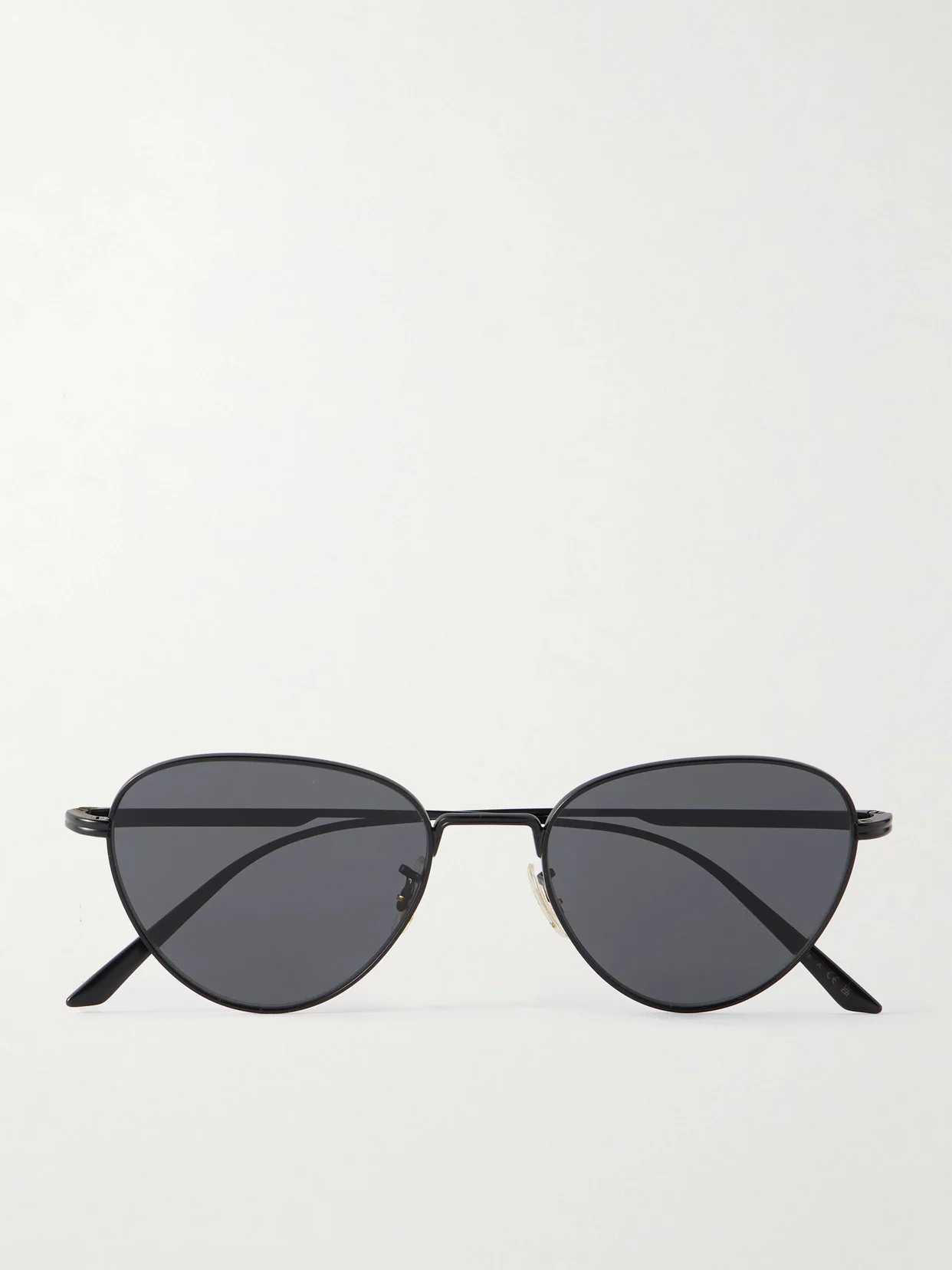 Oliver Peoples joins forces with KHAITE on a range of eyewear that showcases the "signature sensuality and ease" of the New York label. These triangular '1991C' sunglasses have been handmade in Italy from black metal in an angular D-frame profile and etched with lines along the arms.