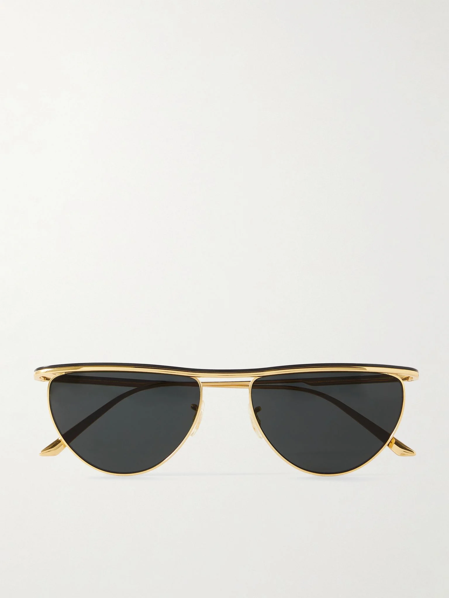 Oliver Peoples has teamed up with New York-based label KHAITE to create a collection of vintage-inspired sunglasses with a modern vision. This cat-eye pair is crafted from sleek gold-tone metal and fitted with contrasting dark-gray lenses. Details & Care - Gold-tone metal - Come in a presentation box - 100% UV protection