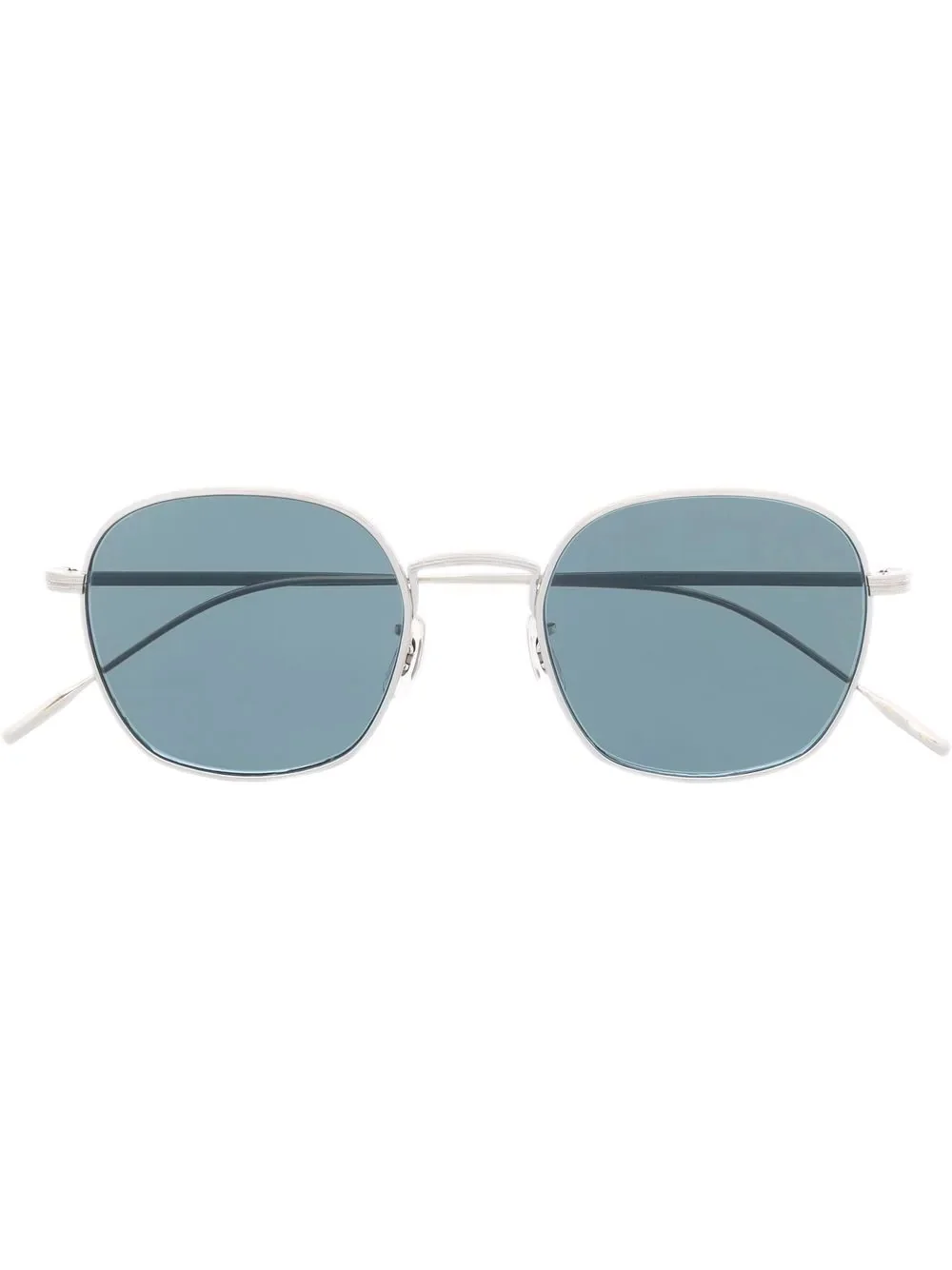 Ades square-frame sunglasses silver-tone titanium angular square frame polarised lenses blue tinted lenses textured finish nose pads straight arms curved tips These glasses come with a protective case. All glasses from FARFETCH are sold as non-prescription frames. Made in Italy Composition Titanium 100% SIZE & FIT Measurement Arm Length 5.7 in(14.5 cm) Bridge Width 0.78 in(2 cm) Lens Diameter 1.96 in(5 cm) Total Width 5.31 in(13.5 cm)