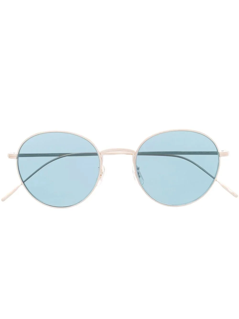 Altair round-frame sunglasses gold-tone/blue titanium round frame blue tinted lenses textured finish nose pads straight arms curved tips These glasses come with a protective case. All glasses from FARFETCH are sold as non-prescription frames. Made in Italy Composition Titanium 100% SIZE & FIT Measurement Arm Length 5.7 in(14.5 cm) Bridge Width 0.78 in(2 cm) Lens Diameter 1.96 in(5 cm) Total Width 5.51 in(14 cm)