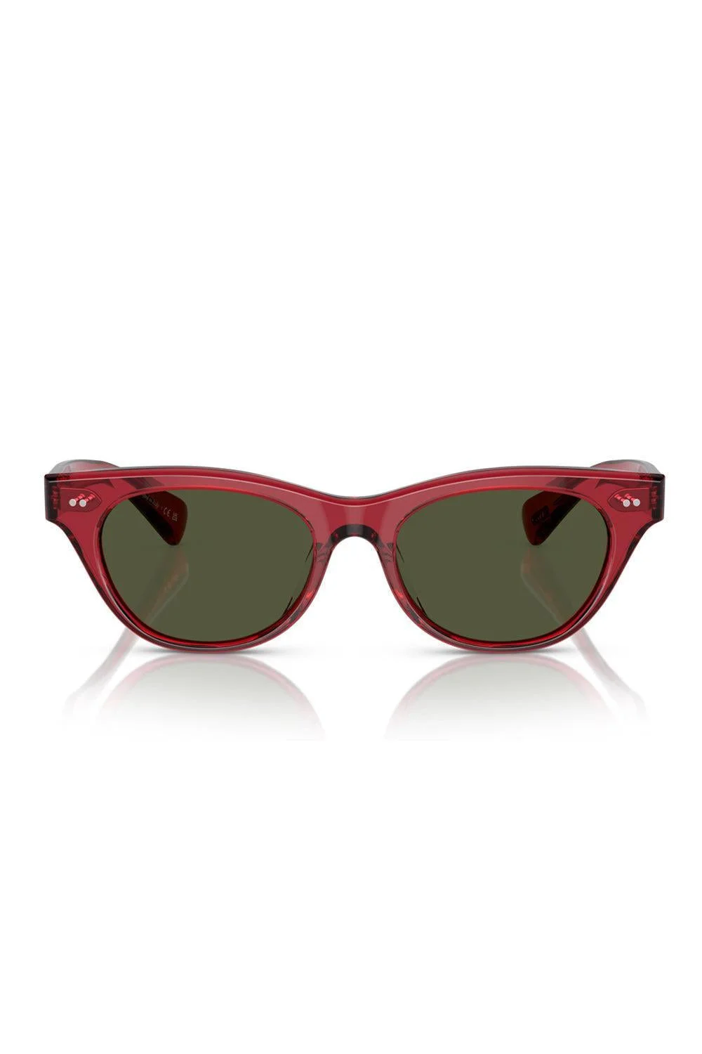 DETAILS AND INSIGHT Oliver Peoples avelin sunglasses in translucent red. Mineral Glass Lenses In Vintage Inspired Tints Feature An Anti-Reflective Coating And 100% Uva/Uvb Protection Acetate Made In Italy Style 0OV5541SU-17645252