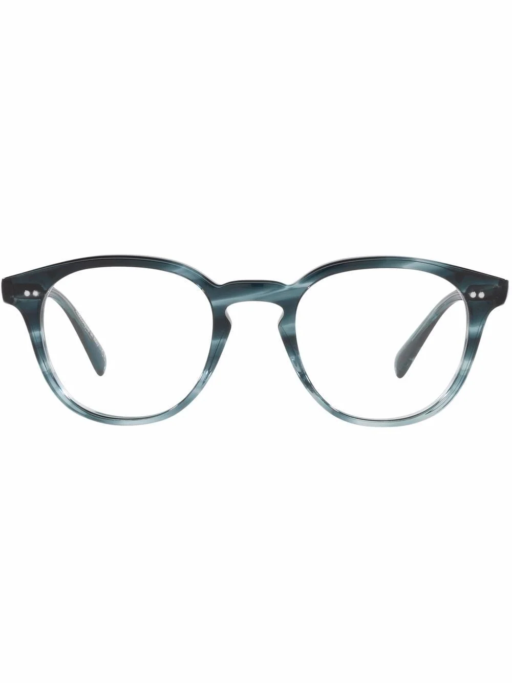 Desmon round glasses washed lapis acetate round frame clear lenses rivet detailing keyhole bridge straight arms curved tips These glasses come with a protective case All glasses from FARFETCH are sold as non-prescription frames Made in United States Composition Acetate 100% SIZE & FIT Measurement Arm Length 5.7 in(14.5 cm) Bridge Width 0.82 in(2.1 cm) Lens Diameter 1.88 in(4.8 cm) Total Width 5.39 in(13.7 cm)