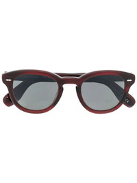 marble-effect sunglasses burgundy red acetate marbled pattern round frame tinted lenses curved arms We know you'll look after them, but these glasses come with protection, just in case. Made in Italy Composition Acetate 100% SIZE & FIT Measurement Arm Length 5.7 in(14.5 cm) Bridge Width 0.86 in(2.2 cm) Lens Diameter 1.88 in(4.8 cm) Total Width 5.51 in(14 cm) Washing instructions LUXOTTICA