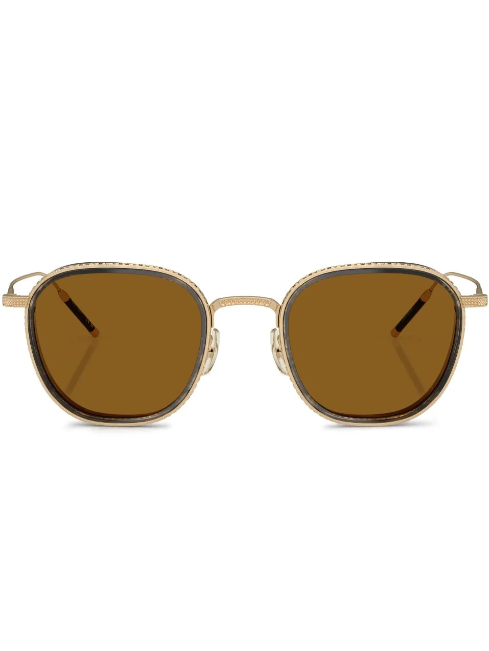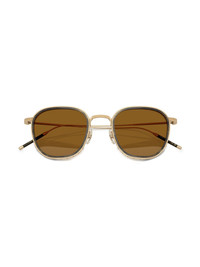 TK-9 sunglasses Highlights - Gold-tone - Titanium - Square frame - Brown tinted lenses - Nose pads - Straight arms - Curved tips - These glasses come with a protective case. Made in United States Composition Titanium 100% SIZE & FIT Measurement Bridge Width 0.86 in(2.2 cm) LENGTH 1.92 in(4.9 cm)
