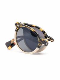 tortoiseshell foldable sunglasses Highlights - Brown - Acetate - Folded design - Tortoiseshell effect - Tinted lenses - Round frame - Straight arms - Curved tips - These glasses come with a protective case. Made in Italy Composition Acetate 100% SIZE & FIT Measurement Arm Length 5.7 in(14.5 cm) Bridge Width 0.9 in(2.3 cm) Lens Diameter 1.85 in(4.7 cm) Total Width 5.51 in(14 cm)