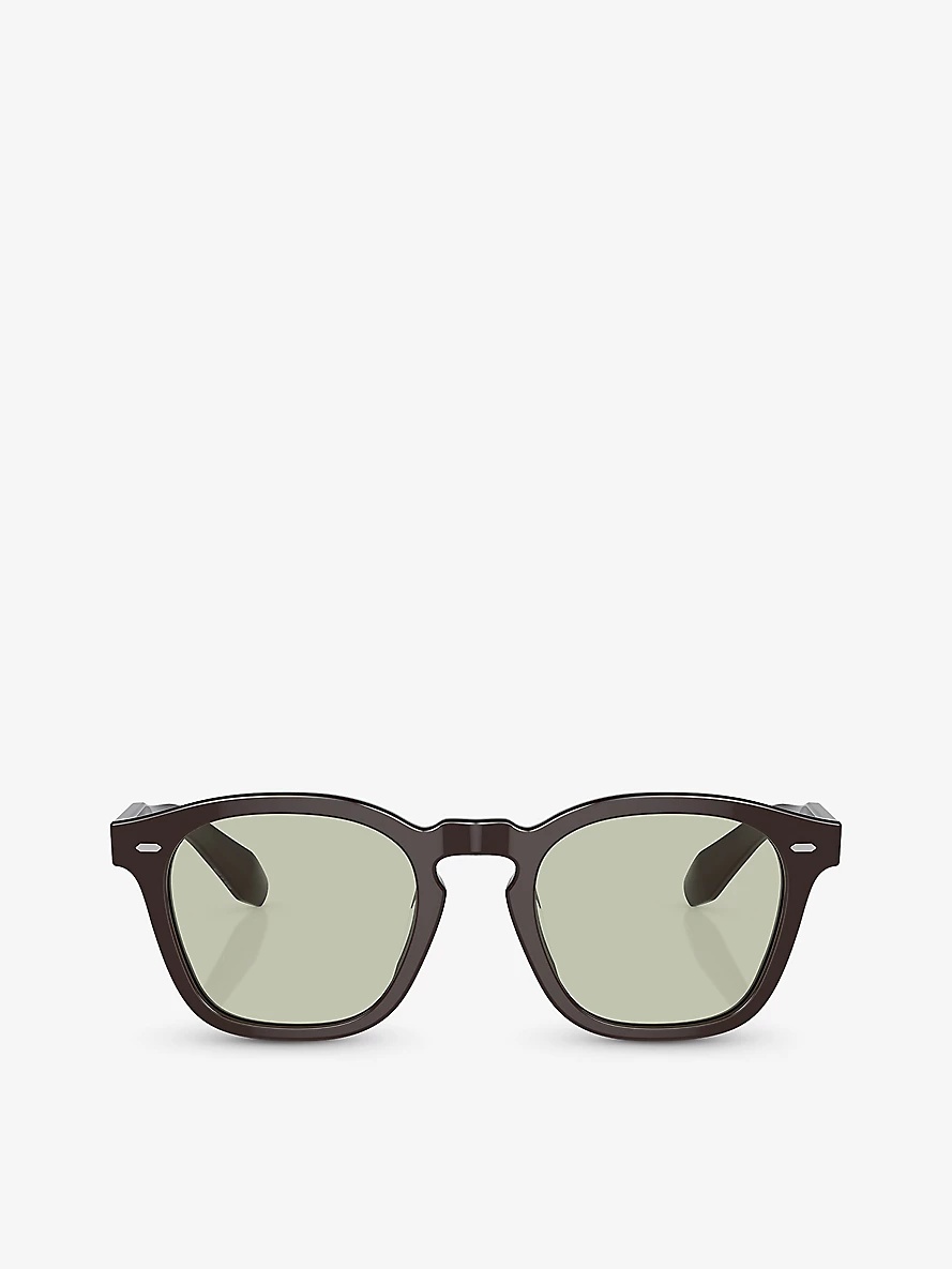 PRODUCT DETAILS - Oliver Peoples acetate optical glasses - 100% acetate - 100% UV protection, clear lenses, branding at sides - Frame shape: pillow - Lens width 4.9cm, bridge width 2.1cm, temple length 14.5cm - Wipe with a clean, dry cloth - Comes with hard case and cloth
