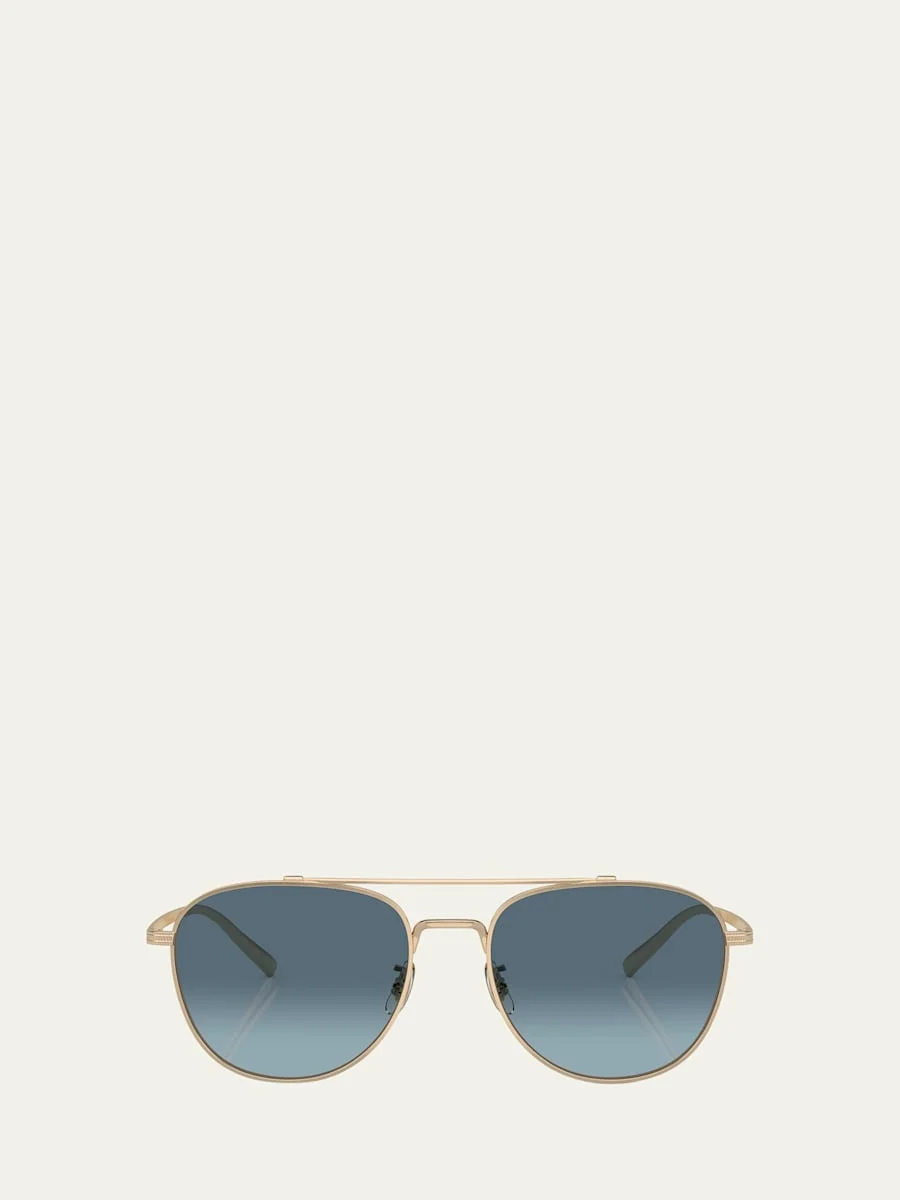 Oliver Peoples "Rivetti" sharp aviator sunglasses in titanium and crystal metal Lens/bridge/temple (in mm): 55-18-145 Gradient lenses Adjustable nose pads Thin, tapered arms Spot clean 100% UVA/UVB protection Made in Italy Proposition 65 warning for California residents Online Inquiries: BGS21_NC11R| Store Inquiries: #4780835