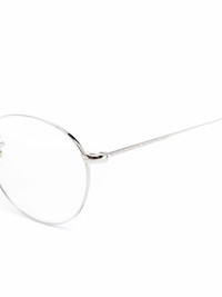 round-frame glasses silver-tone metal round frame clear lenses nose pads straight arms engraved detail All glasses from FARFETCH are sold as non-prescription frames. Made in Italy Composition Metal (Other) 100% SIZE & FIT Measurement Arm Length 5.7 in(14.5 cm) Bridge Width 0.86 in(2.2 cm) Lens Diameter 1.96 in(5 cm) Total Width 5.9 in(15 cm)