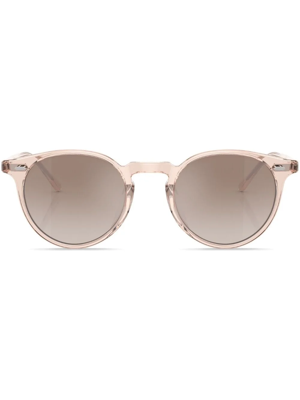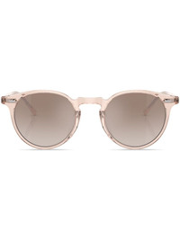 round-frame tinted-lenses sunglasses Highlights - Light pink - Acetate - Round frame - Pink tinted lenses - Straight arms - Curved tips - These glasses come with a protective case. Made in United States Composition Acetate 100%