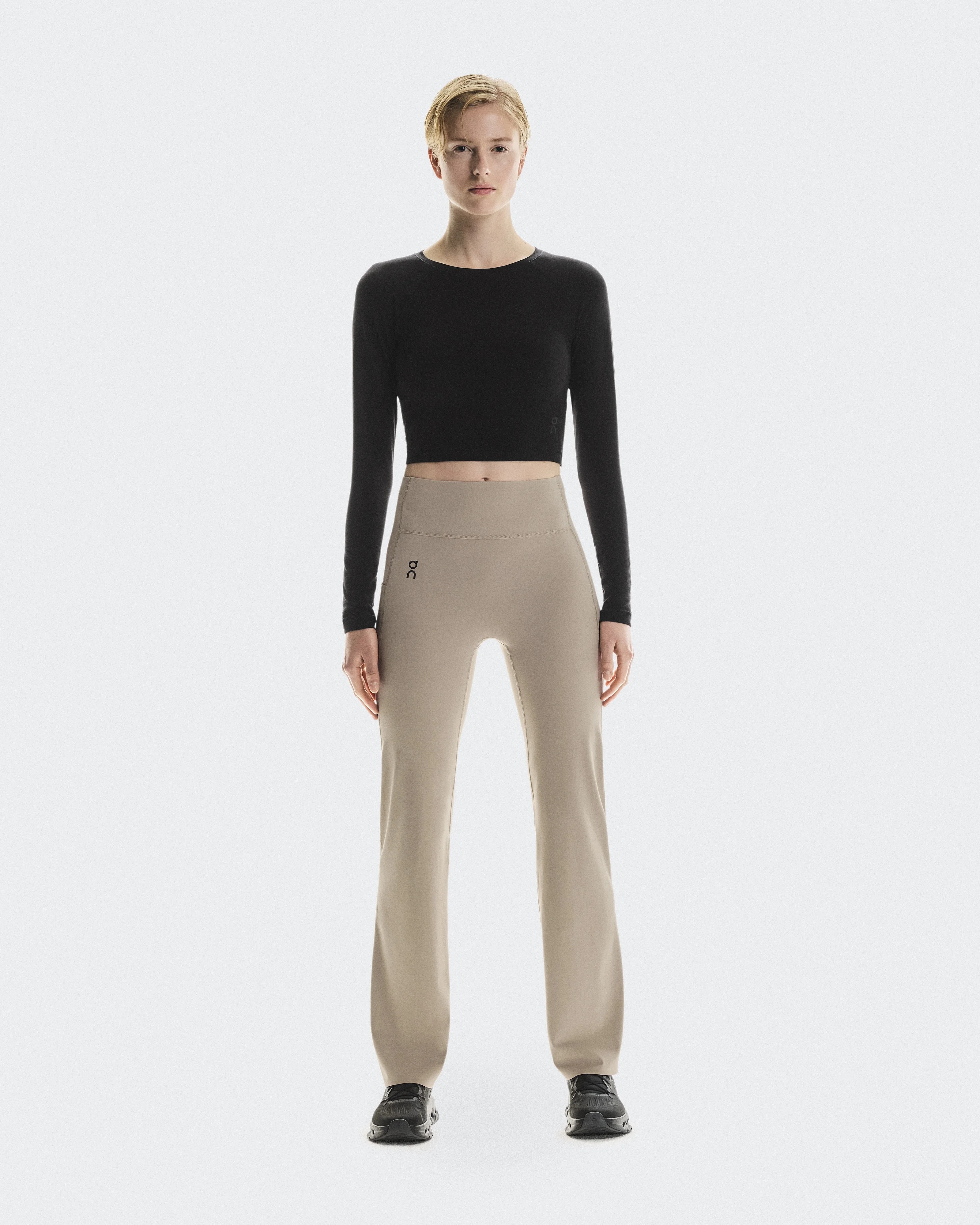 Salutation to savasana, these soft, stretchy leggings leave room to move. With a relaxed flared leg fit and side pocket. Materials & Transparency Materials Main Fabric: Polyester (recycled) 72%, Elastane 28%. Key features - Weight: Noneg - 30" inseam fit - Discreet pocket along side seam - Flared leg for complete range of motion - High-waist design and bonded hem finish - Removed unnecessary front seams - Dual brand logos and Swiss engineering print - Ultra-soft, moisture-wicking fabric blend