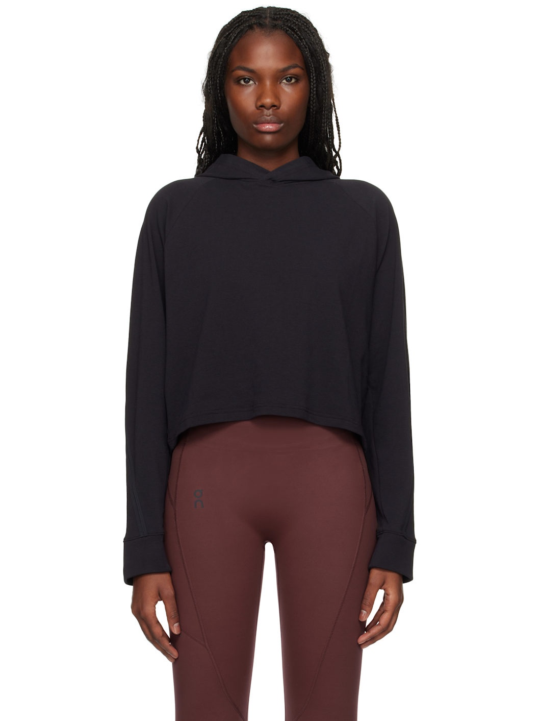 Relaxed-fit stretch polyester- and cotton-blend jersey hoodie. · Cropped hem · Raglan sleeves · Darts at sleeves · Logo bonded at back hem · Logo flag at back hem Supplier color: Black