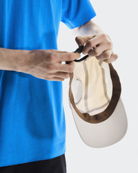 The featherlight cap designed with LOEWE for statement style. With laser-perforation and branded details. Materials & Transparency Materials Main Fabric: Polyester (recycled) 100%. Key features - Weight: Noneg - Designed by LOEWE × On - Featherlight and fast-drying - Made with tear proof woven fabric - Clip-pull flexes to your head size - Reflective LOEWE × On logo - Ultra-soft inner sweatband