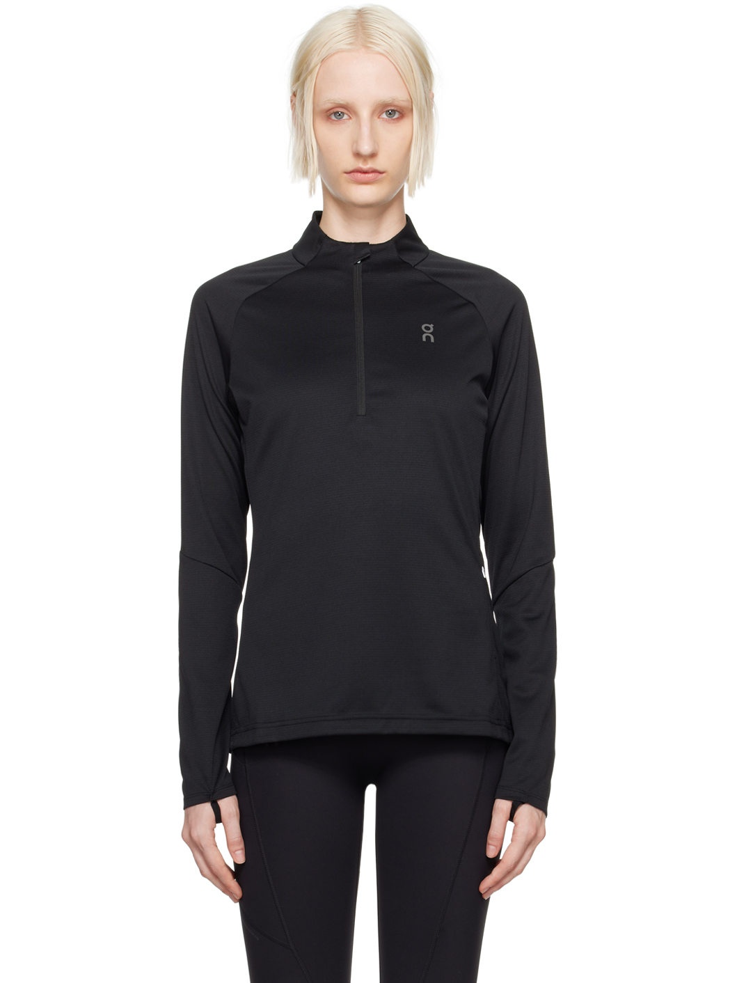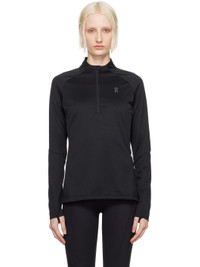 Waffle knit stretch recycled polyester sport top. · Zip closure at stand collar · Logo graphic at chest · Zip seam pockets at waist · Thumb-loops at cuffs · Watch window at sleeve · Raglan sleeves · Logo at back hem Supplier color: Black