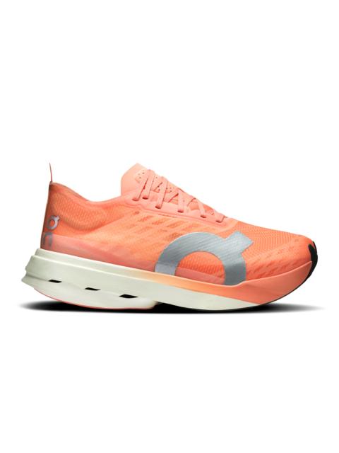 Built for marathons. Race-day ready. This road runner is ultra-responsive and ultra-cushioned. Materials & Transparency Materials Recycled polyester Key features - Weight: /en-us/products/cloudboom-strike-3we3047/womens/white-black-shoes-3WE30470462g - Striking fast racing shoe - Innovative Bounceboard that propels you forward - Ultra-responsive Helion™ HF hyper foam for energy return - CloudTec® elements create a faster, smoother roll-through - One-piece, mesh upper helps to reduce overheating - Ultra-cushioned ride protects against impact - Spoon-shaped 100% carbon Speedboard® to absorb and transfer energy - Super powerful take-offs