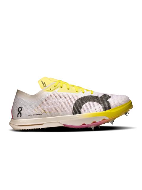 Ultrafast mid-distance track and field spikes. Delivering responsiveness, speed and power for races between 800m–1500m/ Materials & Transparency Materials Upper Unit: recycled polyester / Bottom Unit: Outsole: Pebax / Speedboard: PA11 15% CF / Technology: None Key features - Weight: Noneg - A half-length nylon-blend Speedboard® for powerful take-offs - Pushes you forward with potent propulsion - Helion™ HF hyper foam midsole for soft landings - Six spikes - Light, breathable one-piece upper - Secure upper construction that locks your foot in - Compliant forefoot stack height – 20 mm - Recycled polyester upper